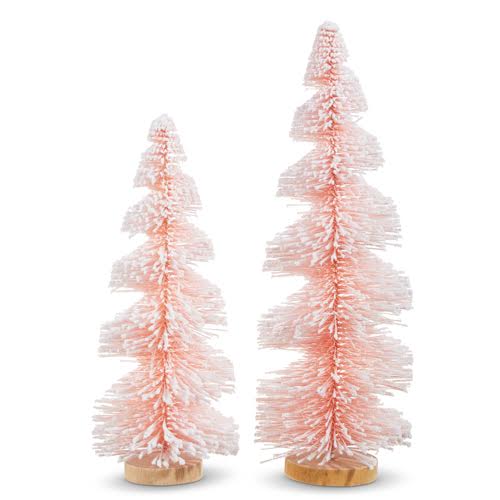 Enhance your mantle this holiday season with these gorgeous pink trees. Featuring a unique swirly design and snow-dusted branches, these trees are the perfect addition to your decor. Display them alongside holiday figures or homes for a festive touch.
